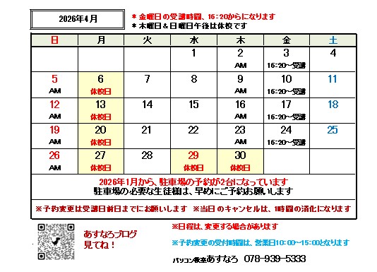 4月の予定表はこちらとなります!