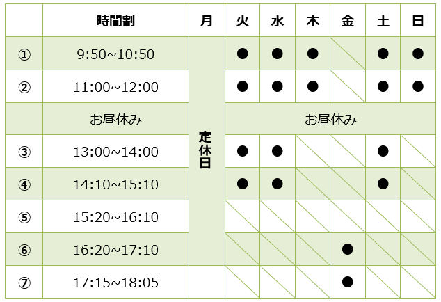 完全予約制ですので自由な時間・曜日を選べます。 もし急用が出来てもお電話による振替も可能ですのでご安心下さい。